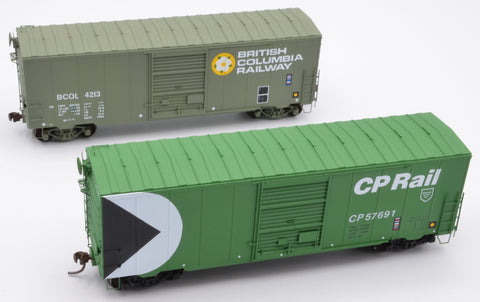 The NSC 40' Boxcar with 8' doors were all-steel freight cars constructed by National Steel Car between 1958 and 1960, entering service with their respective roads shortly thereafter. These boxcars featured pressed steel sides and robust 40-foot steel construction, measuring about 40.6 feet in length. Initially equipped with roofwalks, these safety features were systematically removed between 1974 and 1978 following regulatory changes in North America. Most cars wore the standard “boxcar brown” paint, later displaying the more colorful liveries of their respective roads. These boxcars were mainstays of Canadian freight transport from the late-1950s until their gradual retirement or rebuilding in the late 1970s through the 1980s.